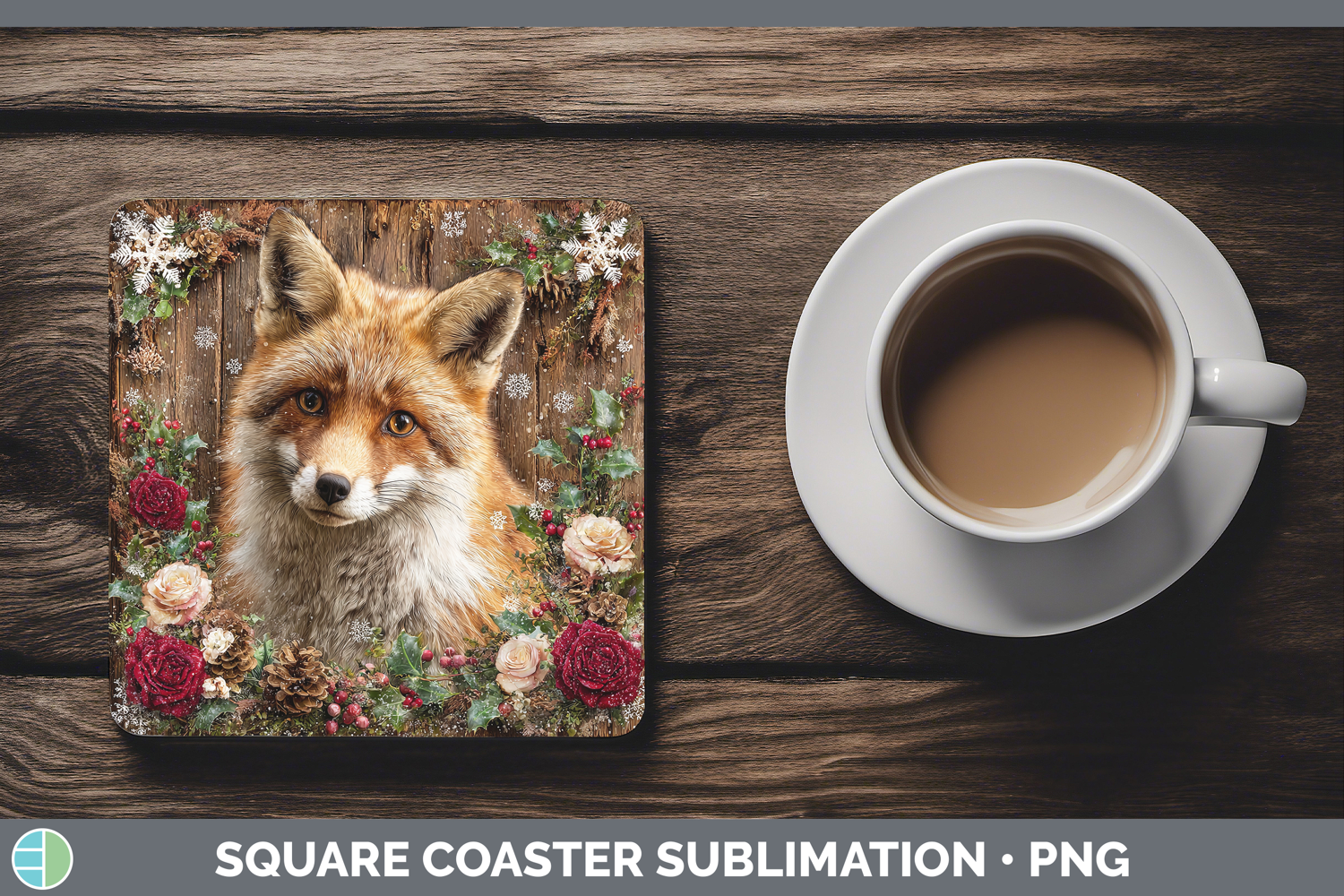 Fox Animals Rustic Christmas Square Coaster Sublimation Desi