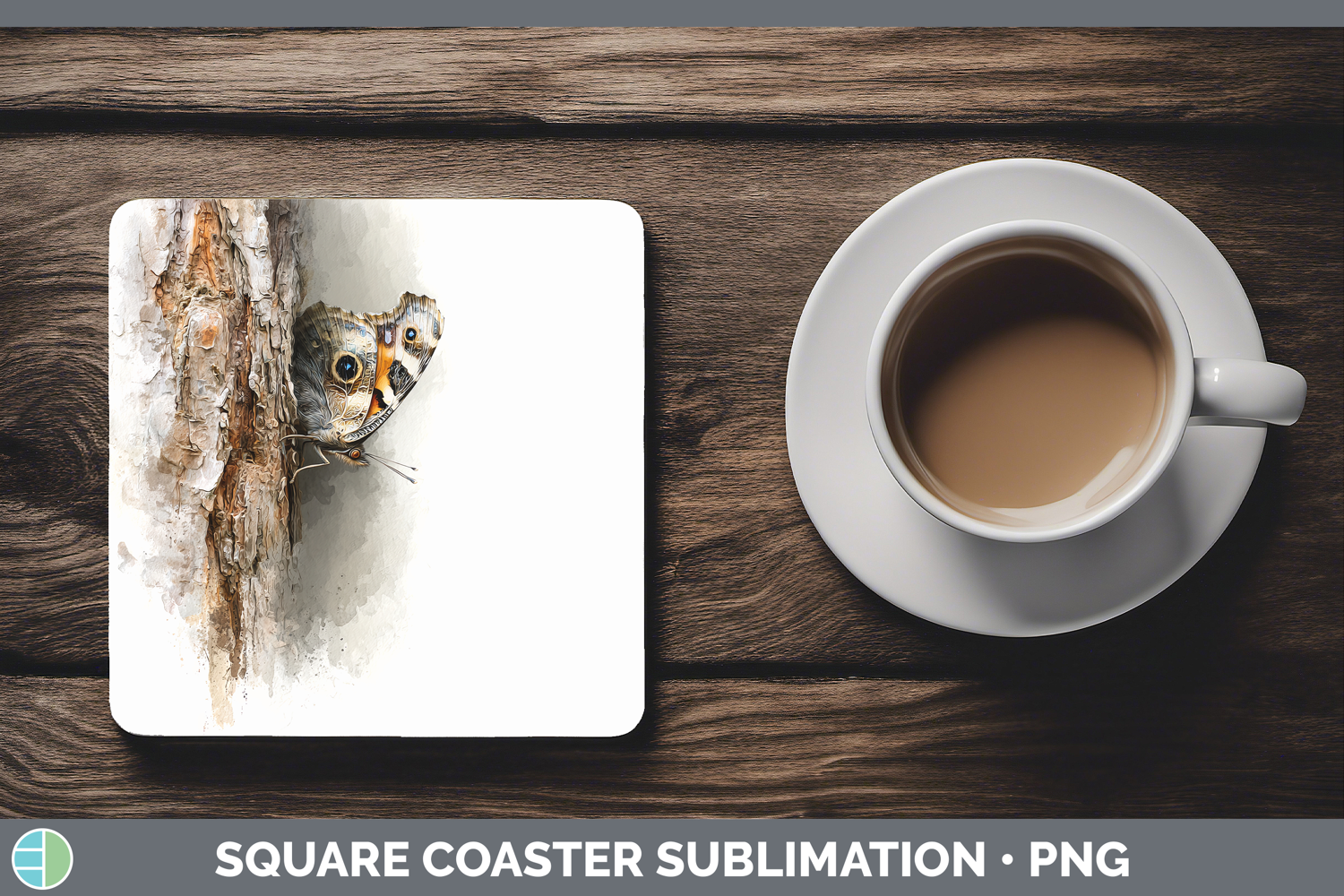 Butterfly Animals Tree Peek Square Coaster Sublimation Desig