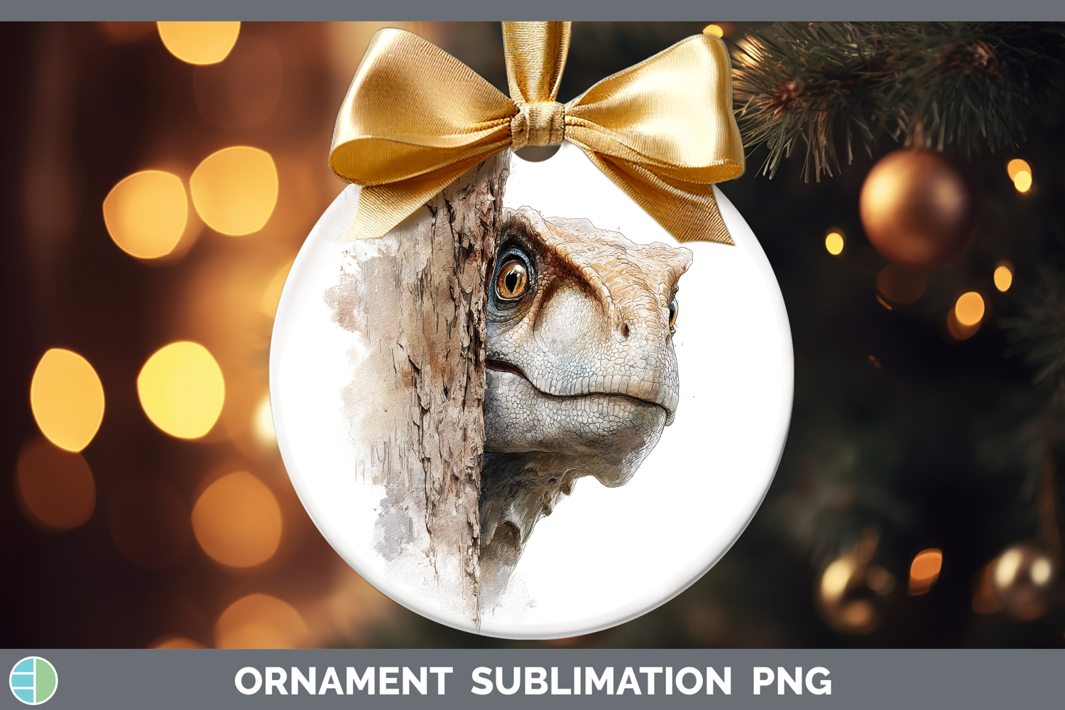 Dinosaur Animals Tree Peek Ornament Sublimation Design