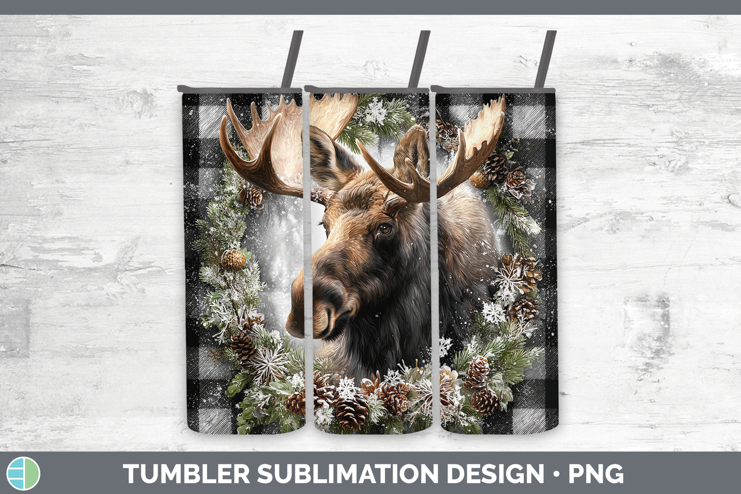 Moose Woodland Checker Christmas Tumbler Sublimation Design