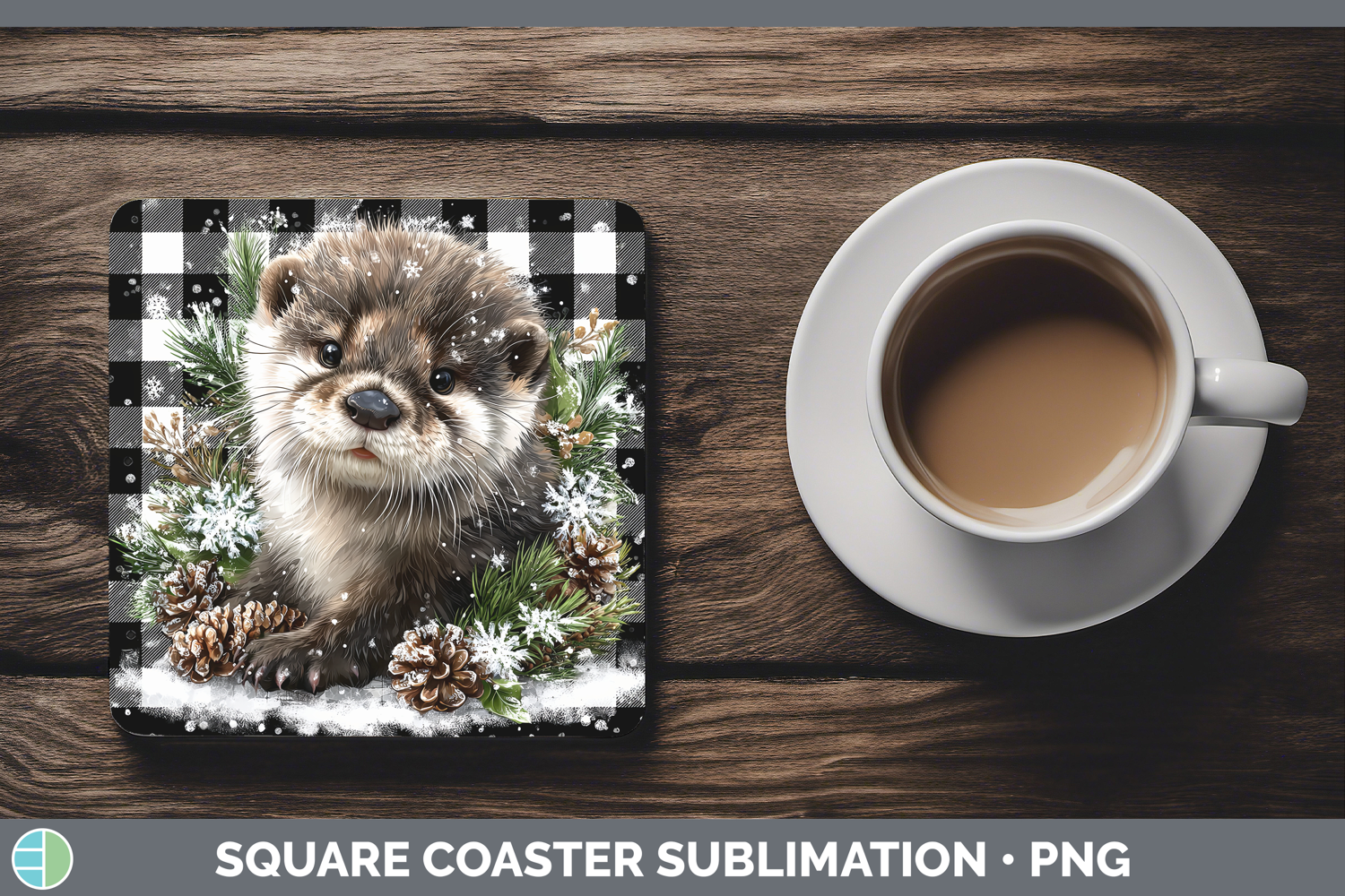 Similar Design Products to Otter Woodland Checker Christmas Square Coaster Sublimation