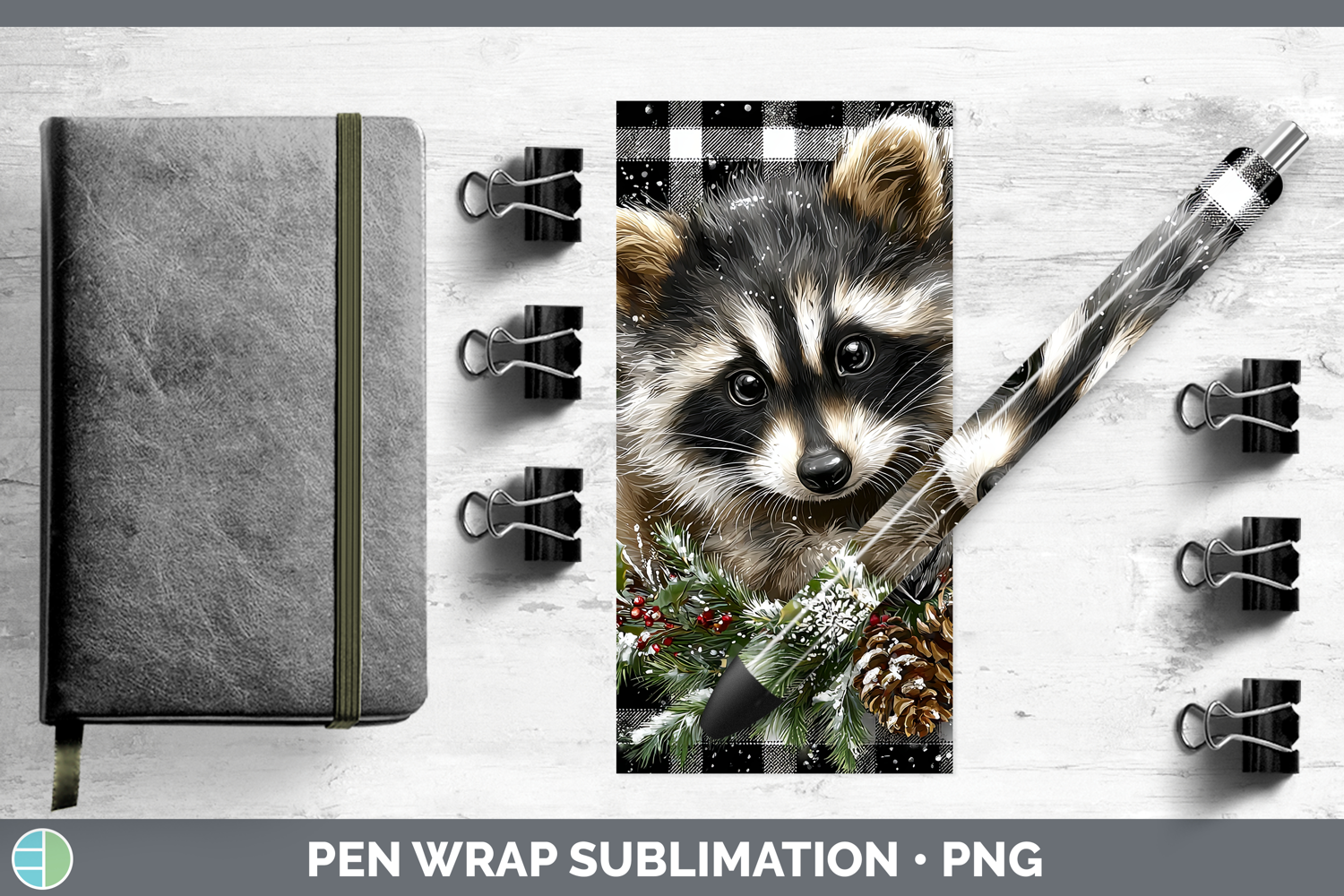 Raccoon Woodland Checker Christmas Pen Wrap Sublimation Desi