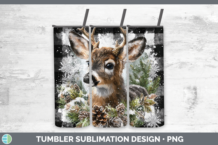 Reindeer Woodland Checker Christmas Tumbler Sublimation Desi
