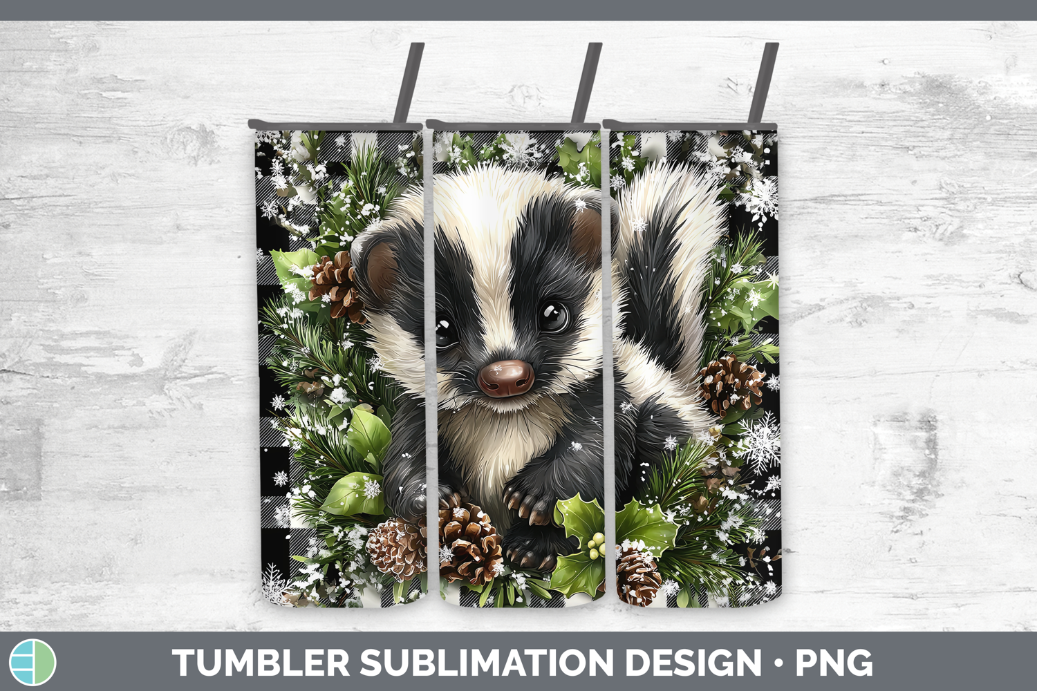 Skunk Woodland Checker Christmas Tumbler Sublimation Design