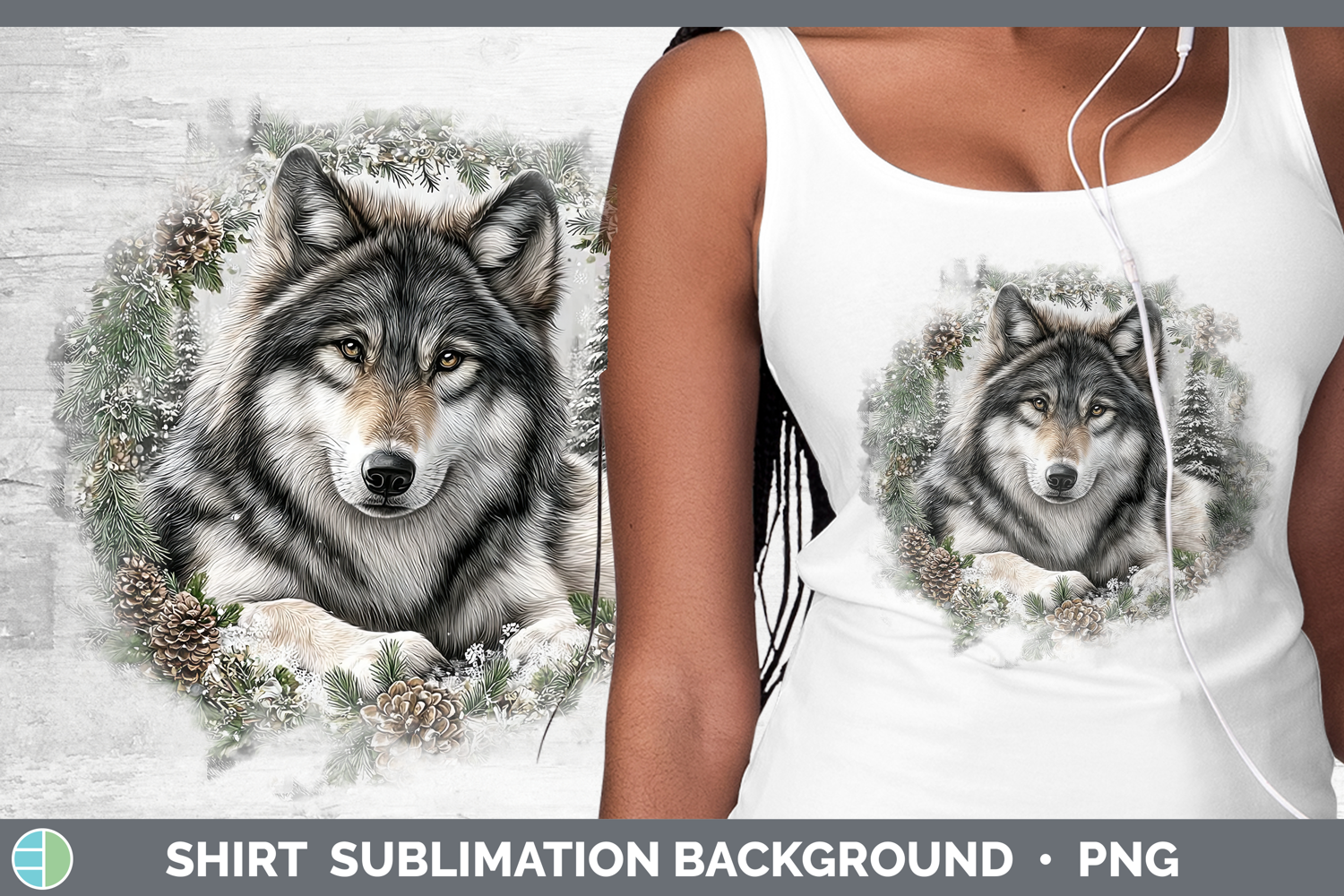 Wolf Woodland Checker Christmas Shirt Sublimation Design