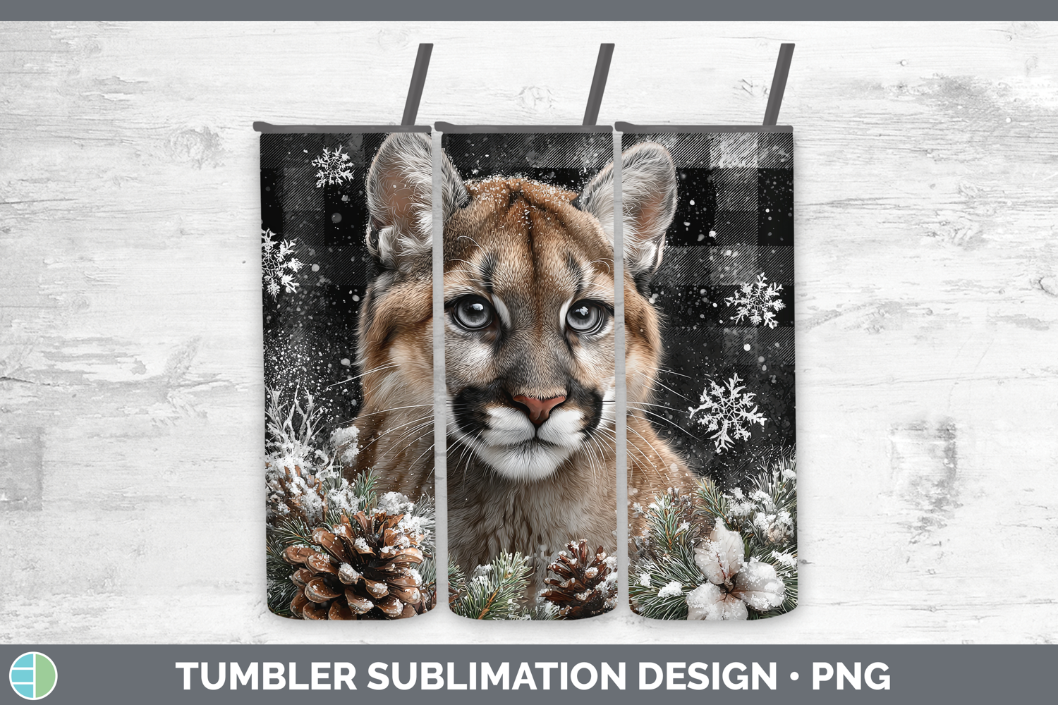 Cougar Woodland Checker Christmas Tumbler Sublimation Design