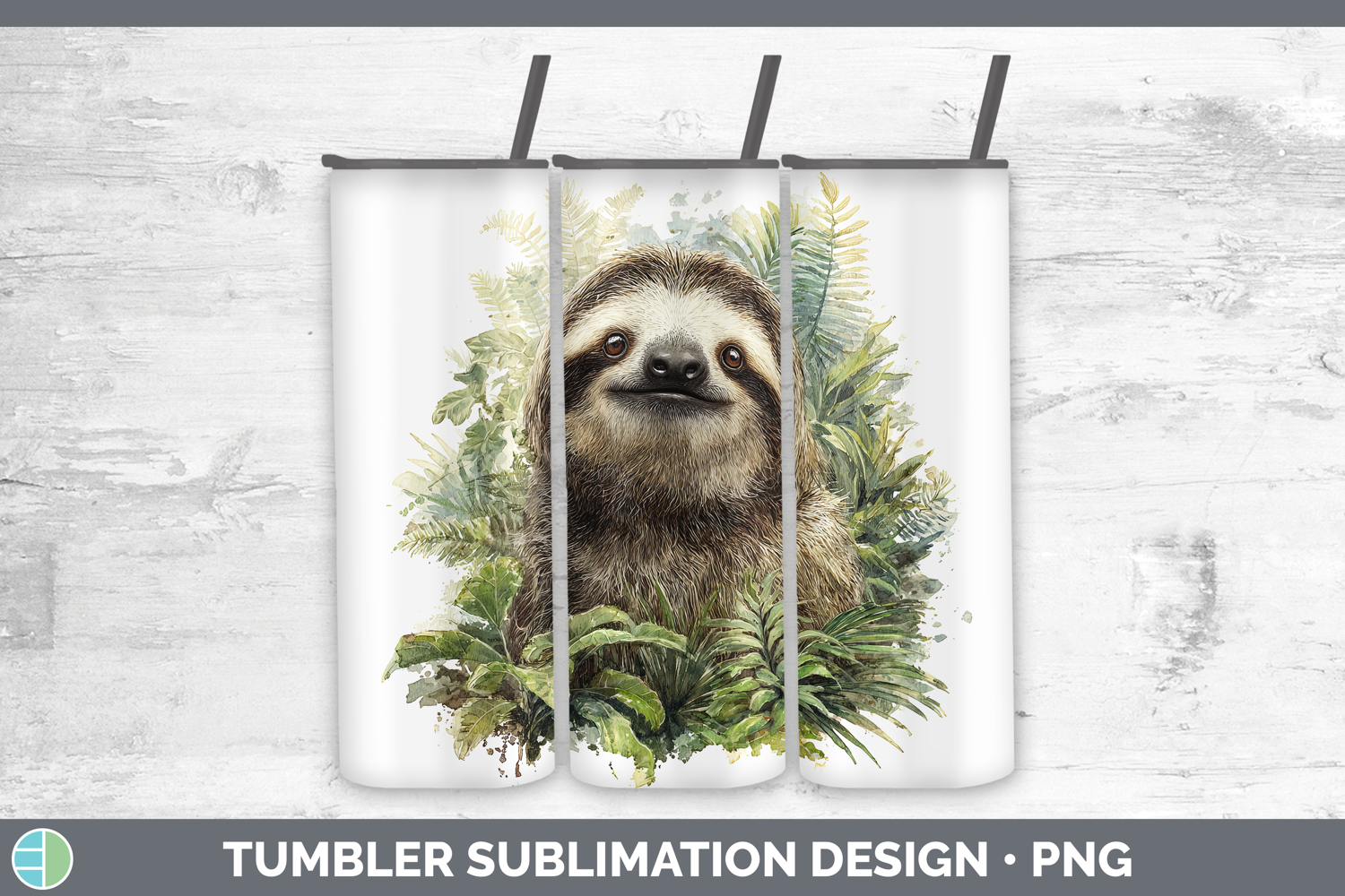 Sloth Safari Botanicals Tumbler Sublimation Design