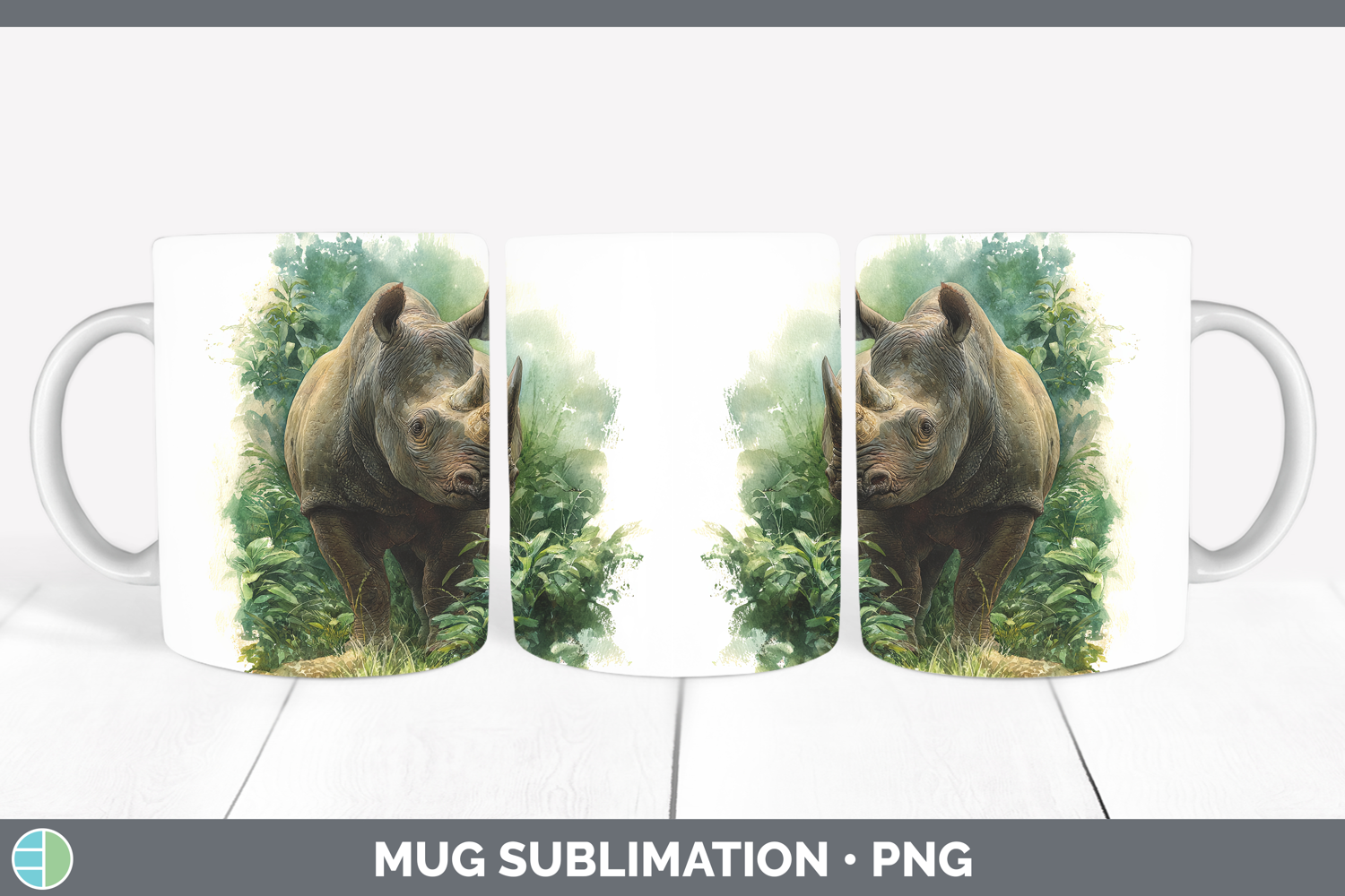 Rhino Safari Botanicals Mug Wrap Sublimation Design