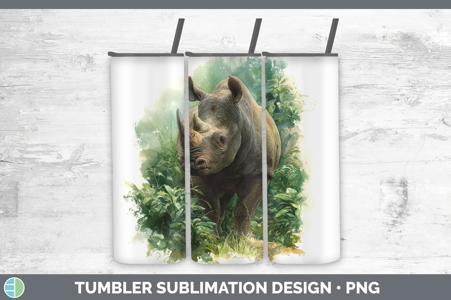 Rhino Safari Botanicals Tumbler Sublimation Design