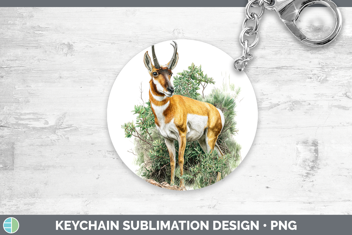 Antelope Safari Botanicals Keychain Sublimation Design