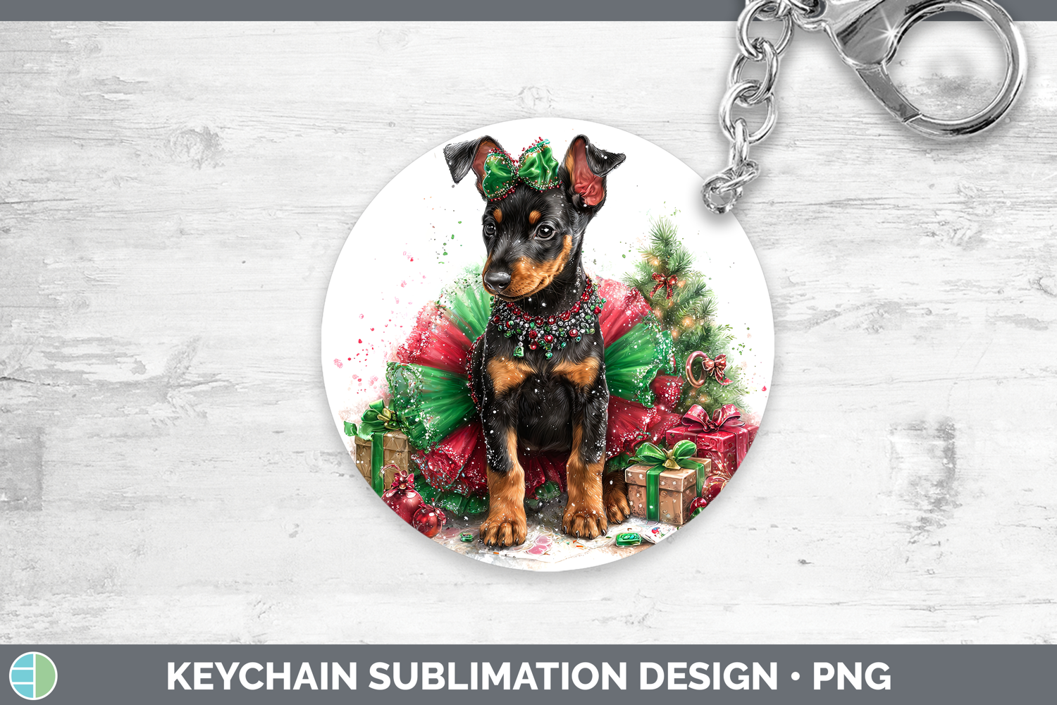 Doberman Pinscher Dogs 01 Cute Christmas Keychain Sublimatio