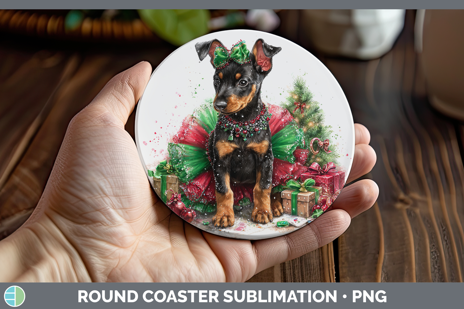 Doberman Pinscher Dogs 01 Cute Christmas Round Coaster Subli