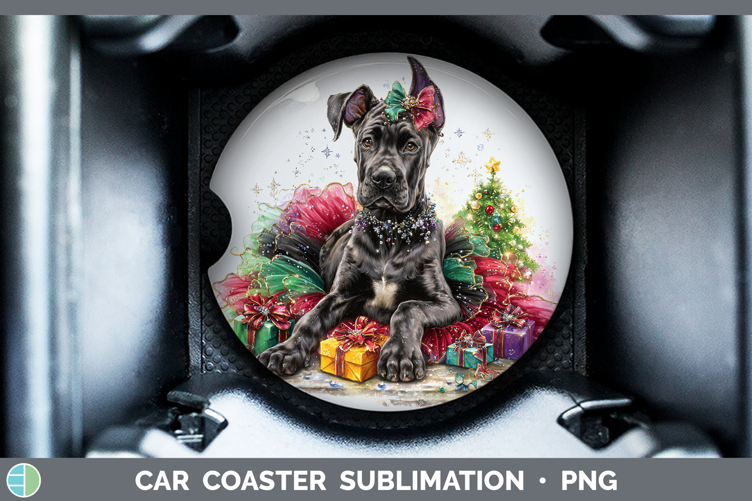 Great Dane Dogs 01 Cute Christmas Car Coaster Sublimation De