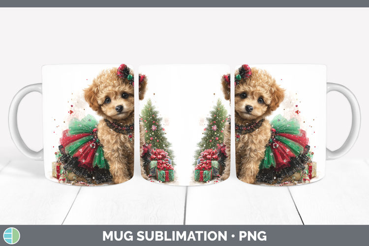 Poodle Dogs 01 Cute Christmas Mug Wrap Sublimation Design