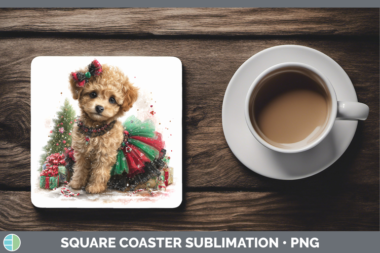 Poodle Dogs 01 Cute Christmas Square Coaster Sublimation Des