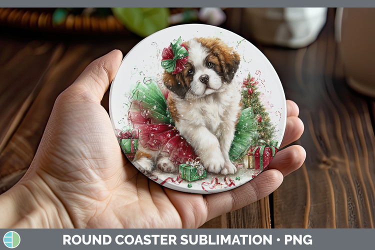 Saint Bernard Dogs 01 Cute Christmas Round Coaster Sublimati