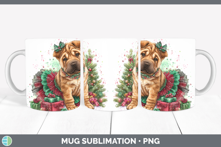 Shar Pei Dogs 01 Cute Christmas Mug Wrap Sublimation Design