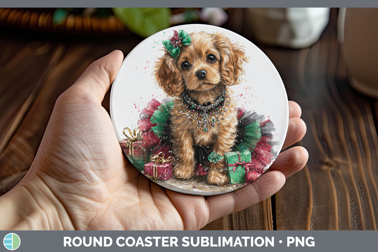 GorgeousDogs 01 Cute Christmas Round Coaster design.