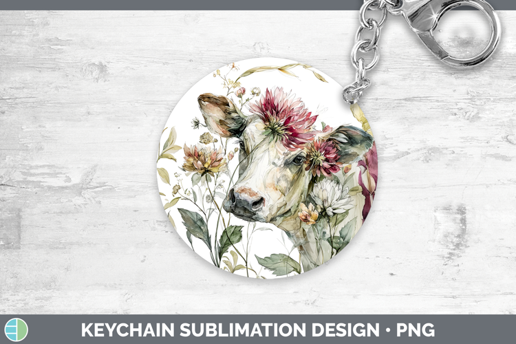Cow Farm Autumn Floral Keychain Sublimation Design