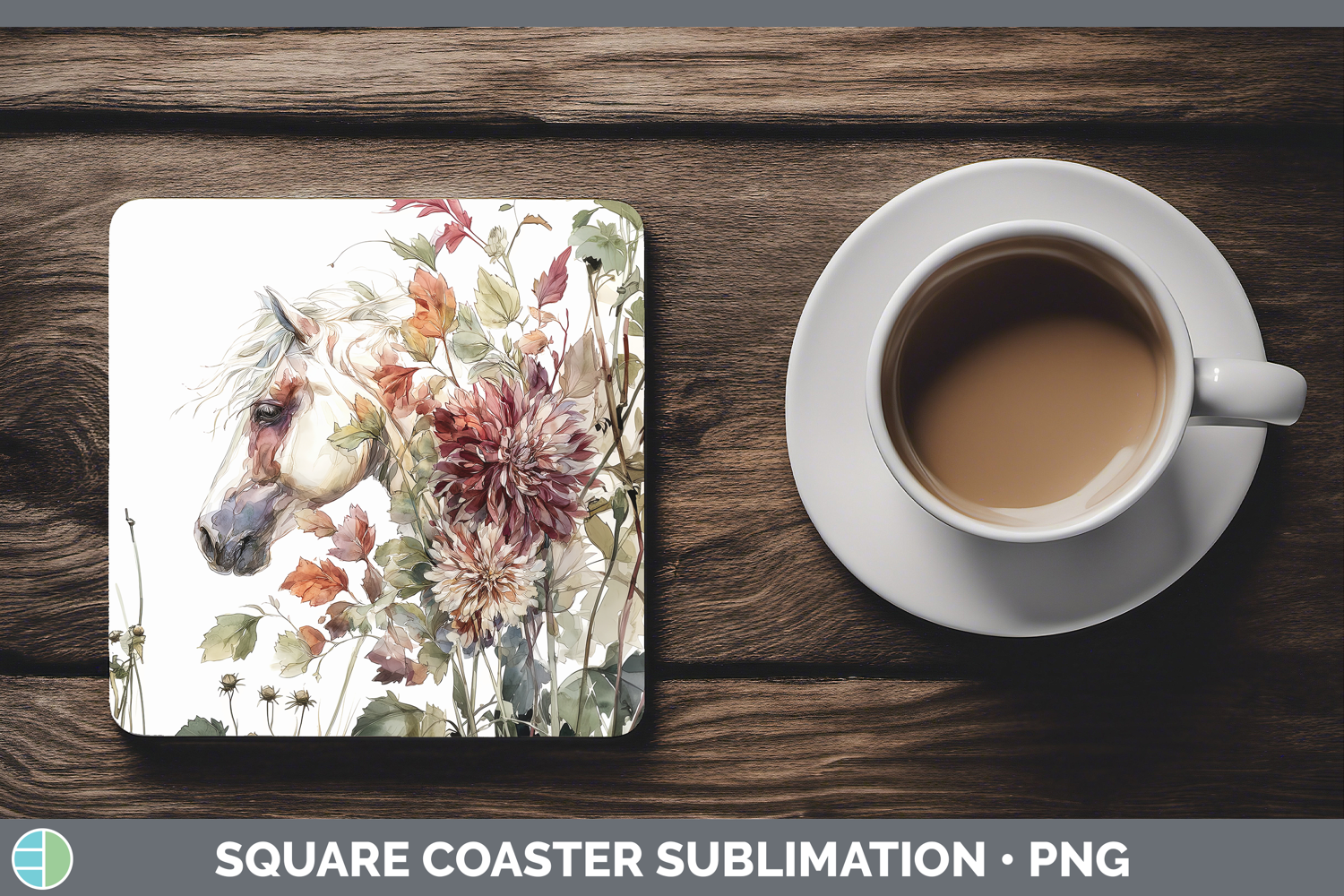 Horse Farm Autumn Floral Square Coaster Sublimation Design