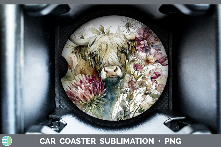 Highland Cow Farm Autumn Floral Car Coaster Sublimation Desi