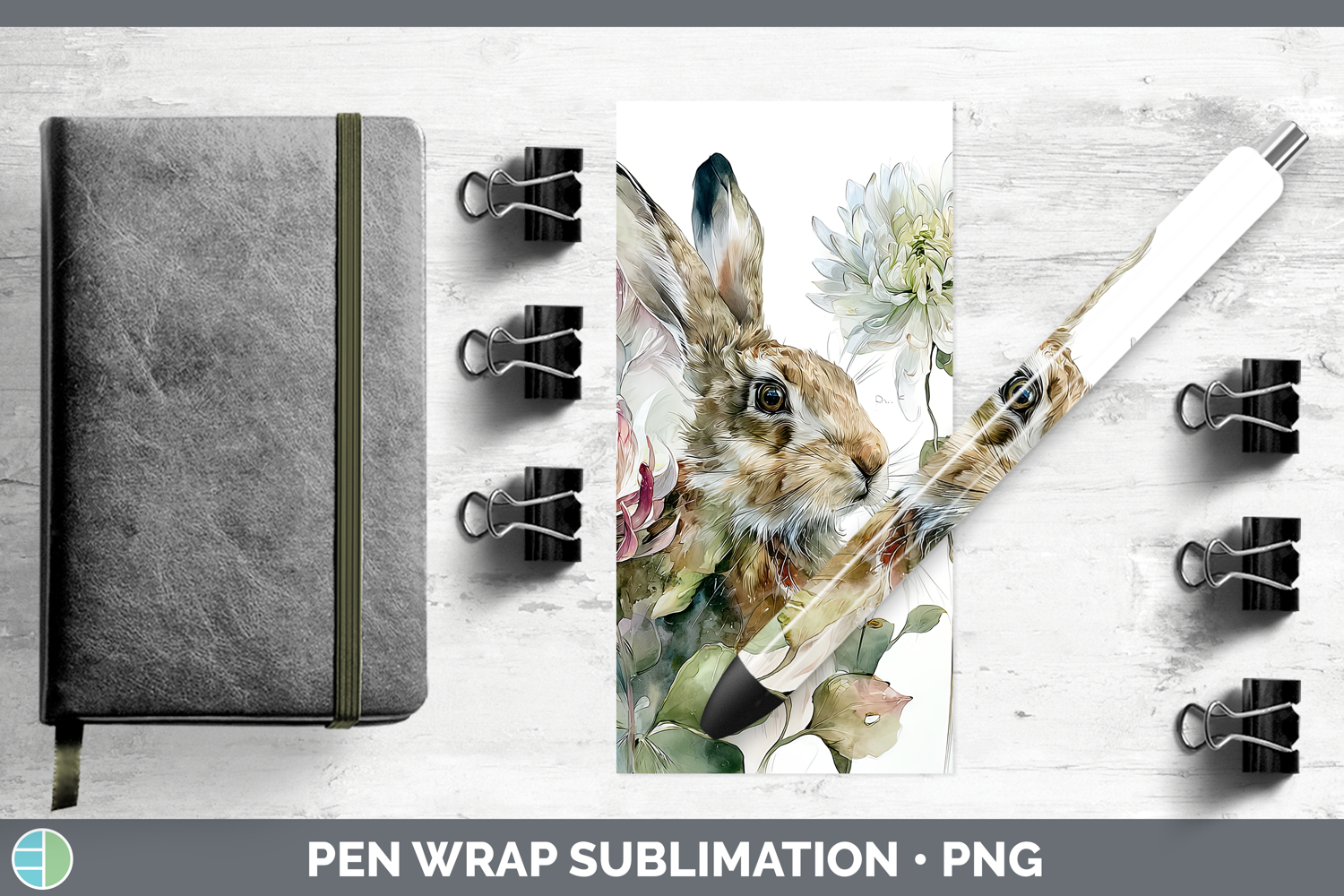 Bunny Farm Autumn Floral Pen Wrap Sublimation Design