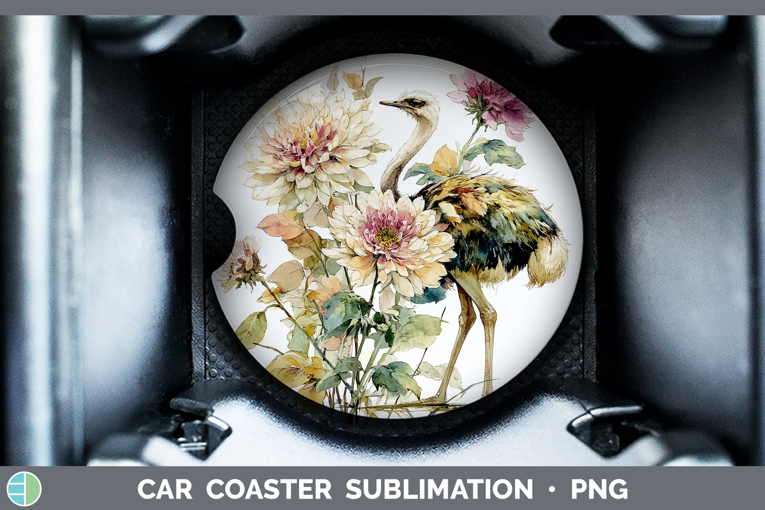 Ostrich Farm Autumn Floral Car Coaster Sublimation Design