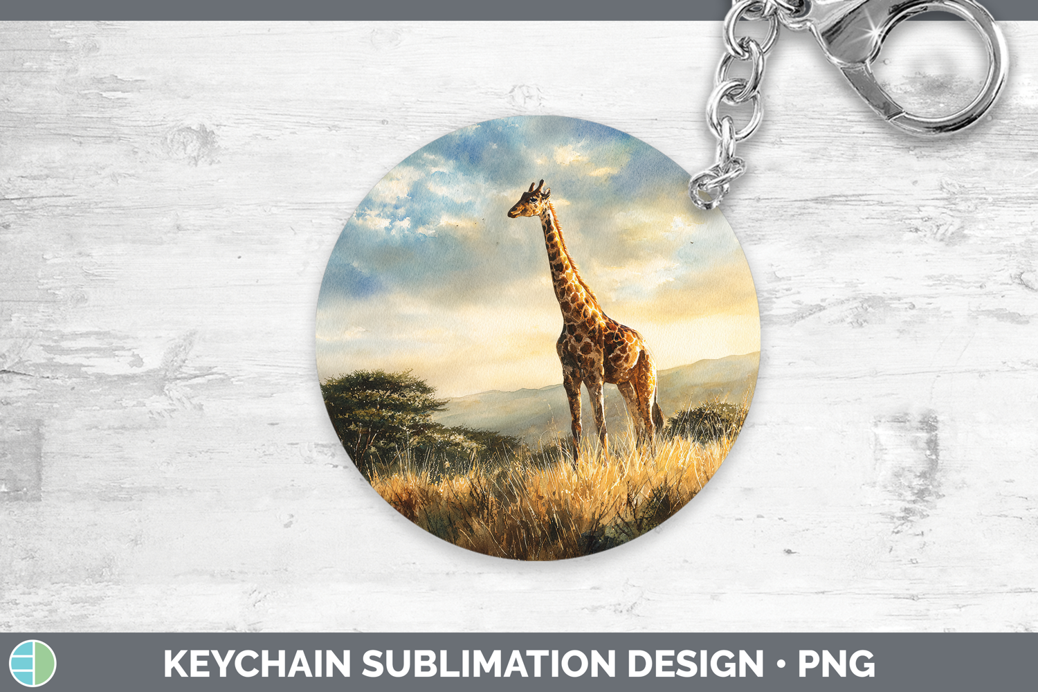Giraffe Safari Sunset Keychain Sublimation Design