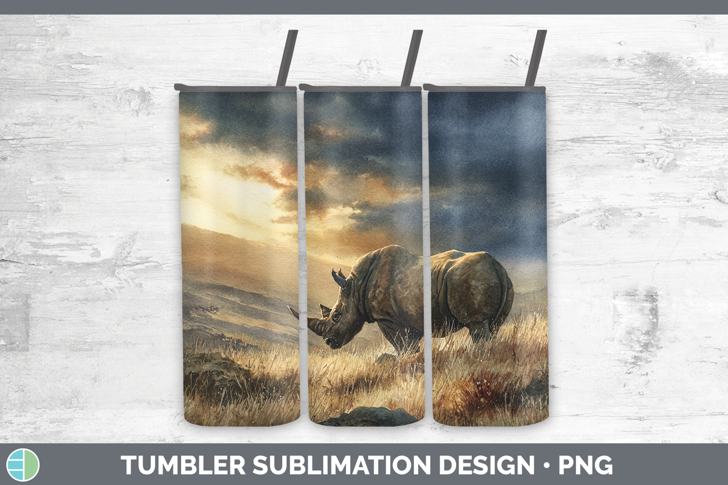 Rhino Safari Sunset Tumbler Sublimation Design