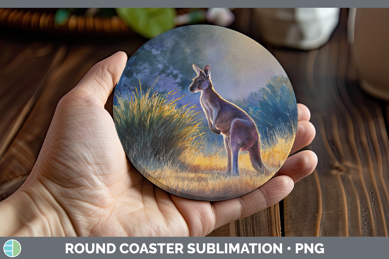 Kangaroo Safari Sunset Round Coaster Sublimation Design