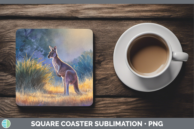 Kangaroo Safari Sunset Square Coaster Sublimation Design