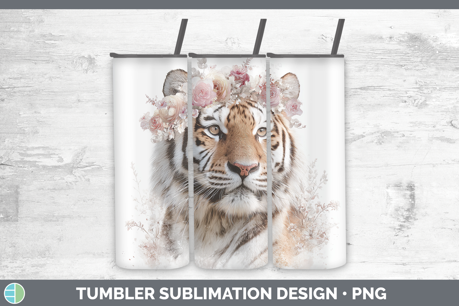 Similar Design Products to Tiger Animals Floral Crown Tumbler Sublimation Design