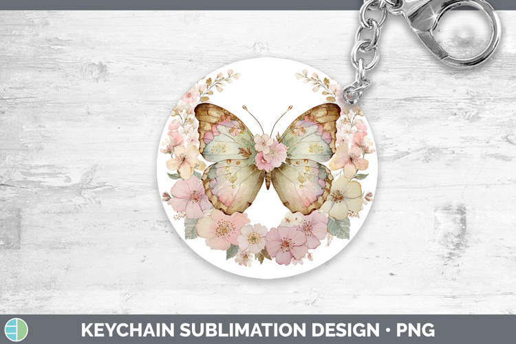 Butterfly Animals Floral Crown Keychain Sublimation Design