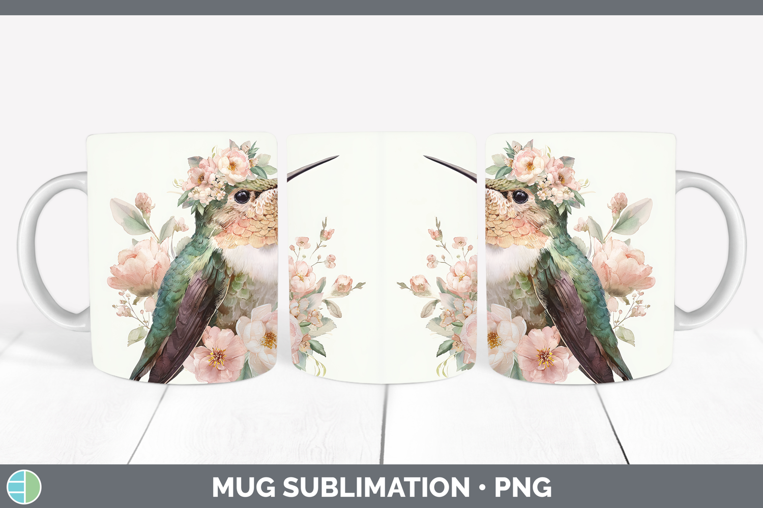 Hummingbird Animals Floral Crown Mug Wrap Sublimation Design