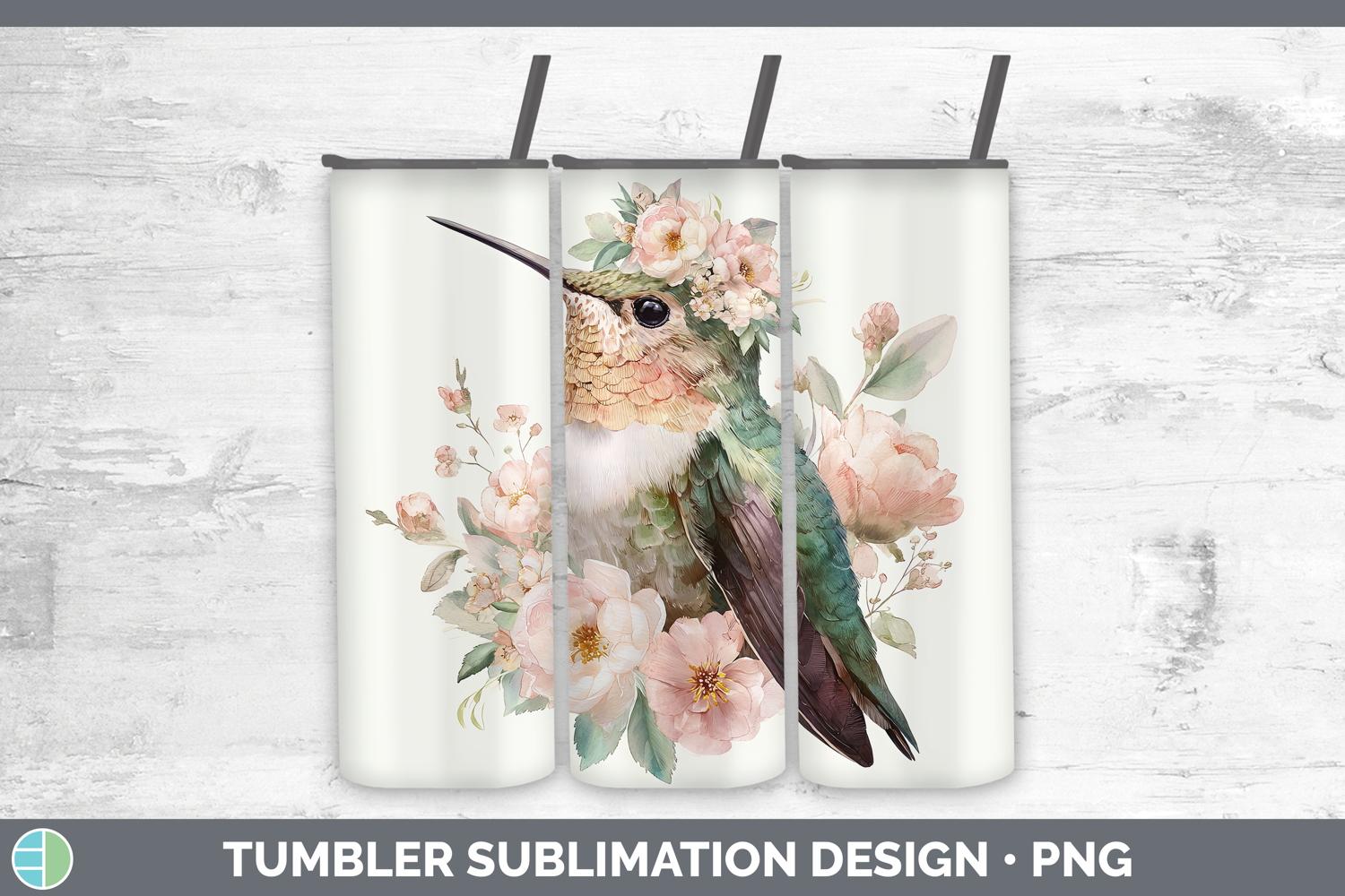 Hummingbird Animals Floral Crown Tumbler Sublimation Design