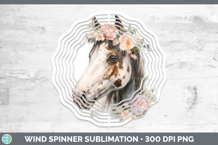 Horse Animals Floral Crown Wind Spinner Sublimation Design