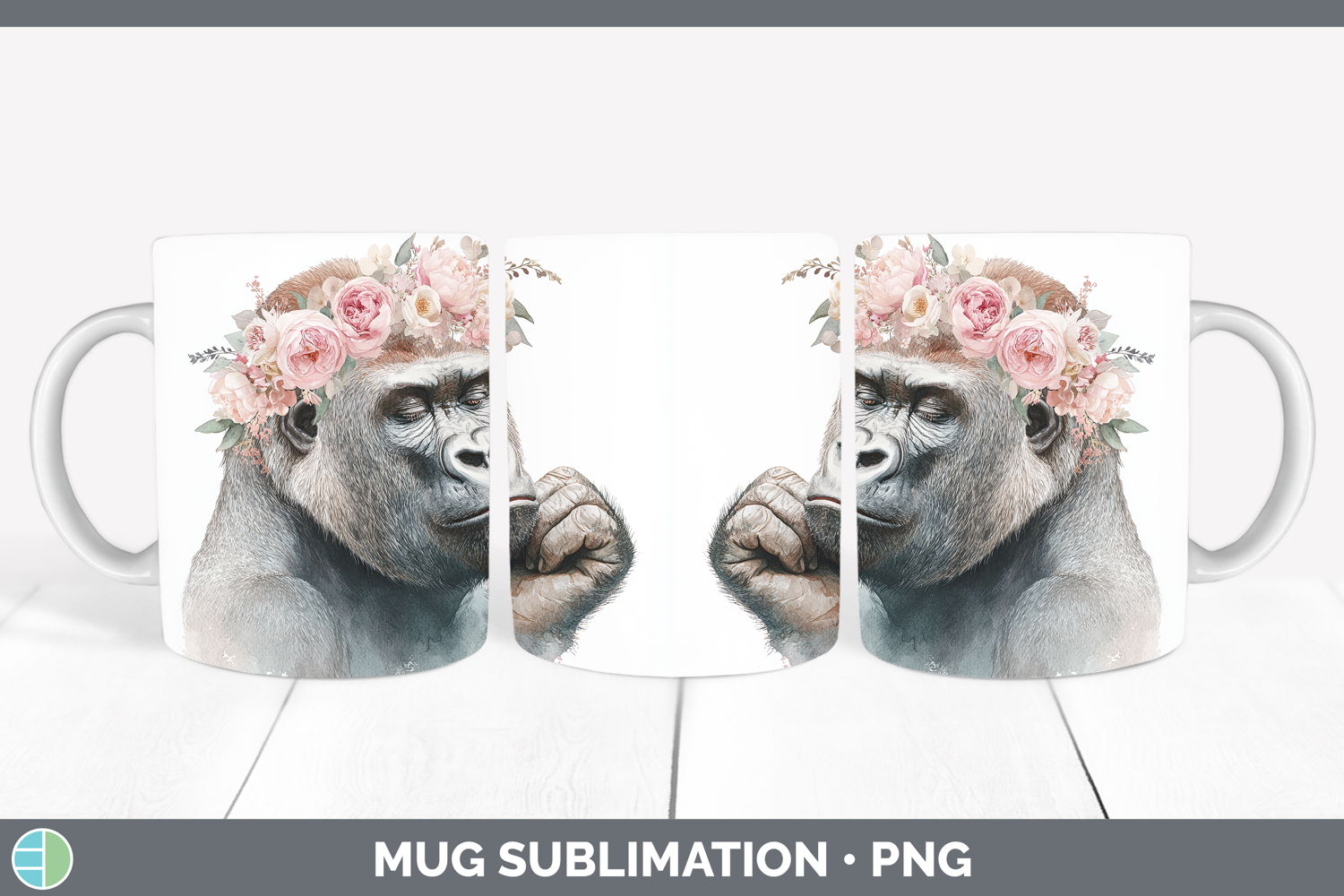 Similar Design Products to Gorilla Animals Floral Crown Mug Wrap Sublimation Design
