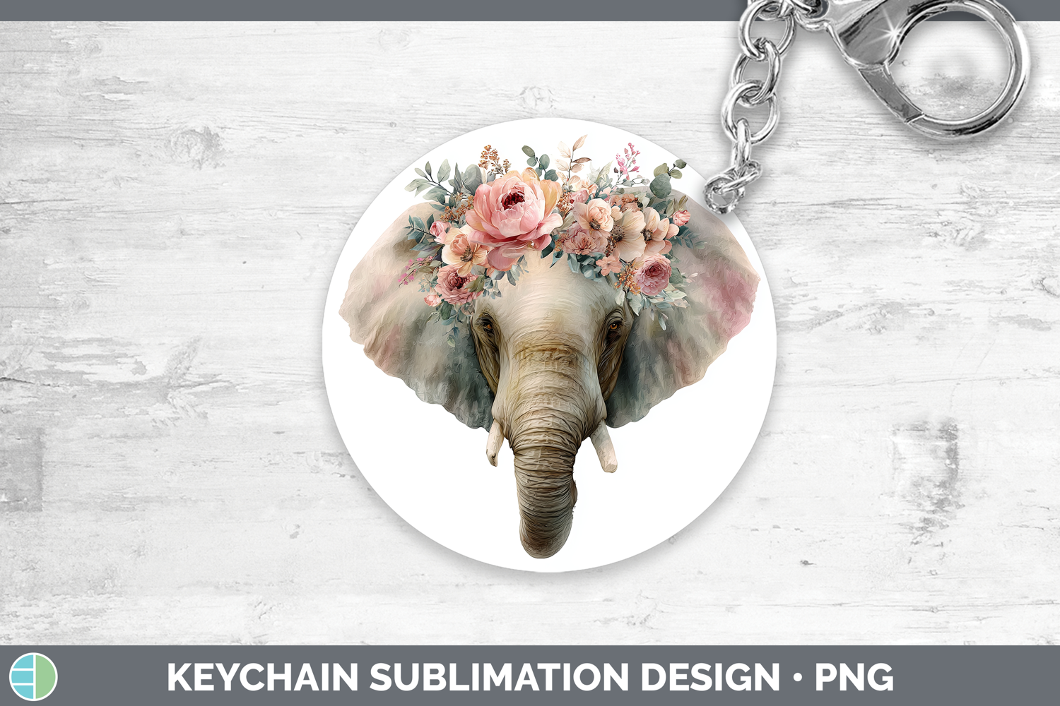 Elephant Animals Floral Crown Keychain Sublimation Design