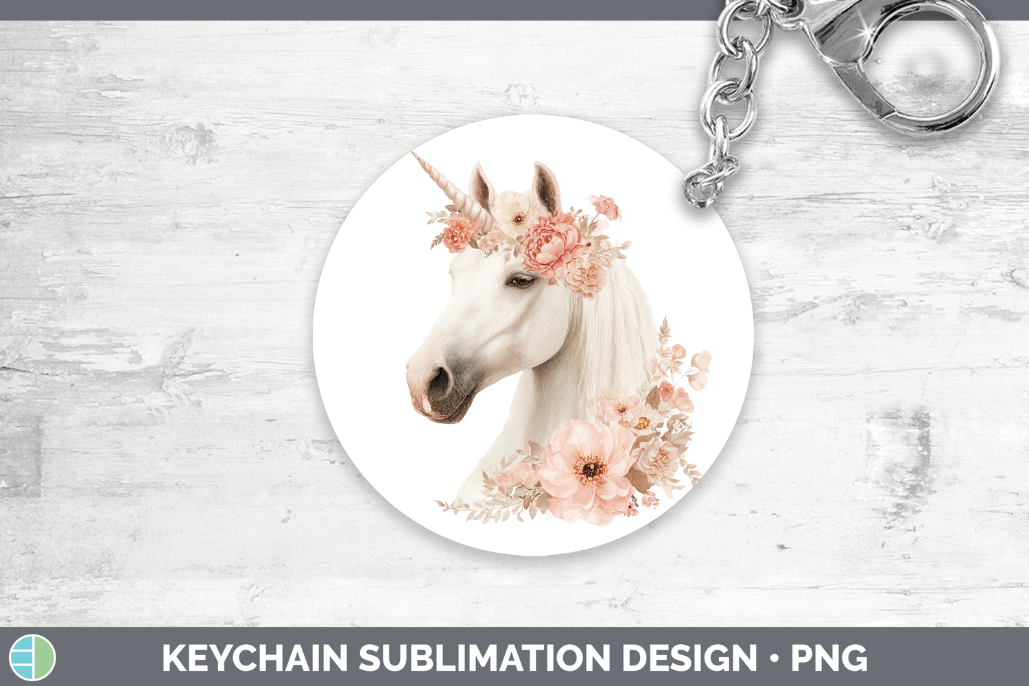 Unicorn Animals Floral Crown Keychain Sublimation Design