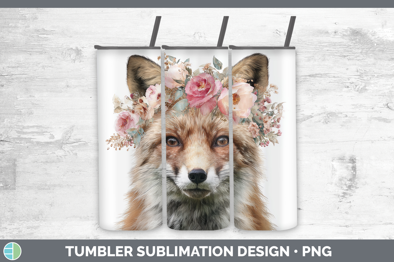 Fox Animals Floral Crown Tumbler Sublimation Design