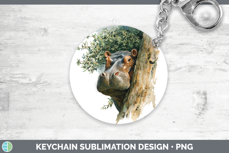 Hippo Safari Tree Peek Keychain Sublimation Design