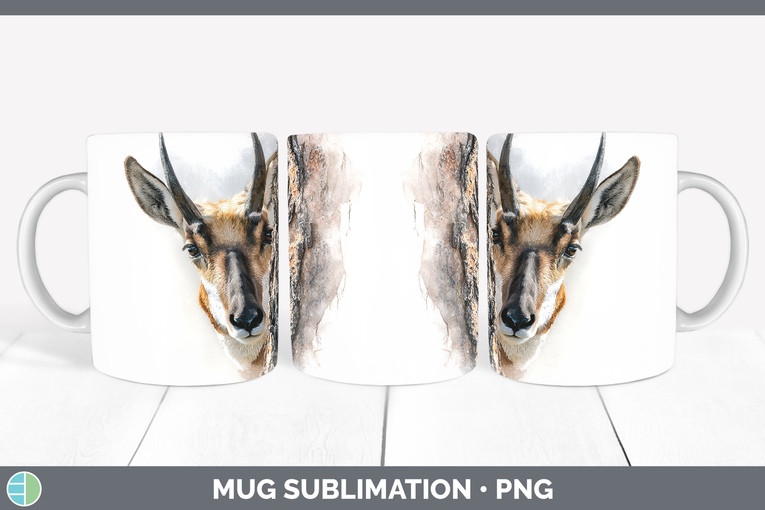 Antelope Safari Tree Peek Mug Wrap Sublimation Design