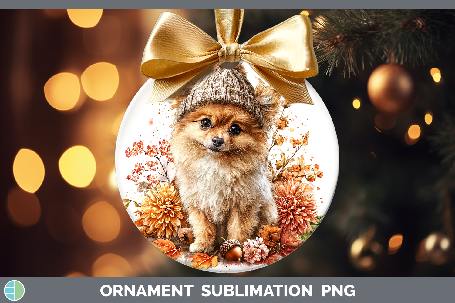 Pomeranian Dogs 01 Knit Hat Ornament Sublimation Design