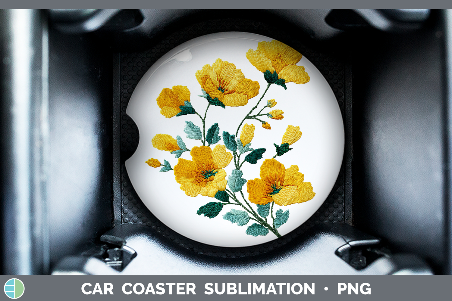 Buttercup Flowers 01 Embroidery Car Coaster Sublimation Desi