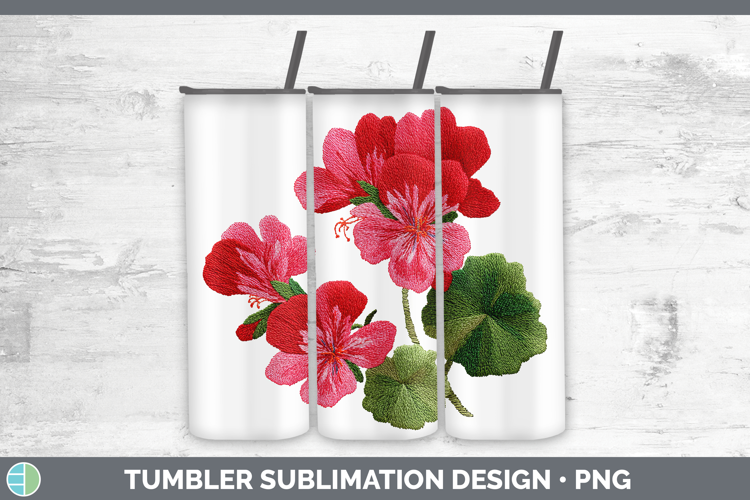 Geranium Flowers 01 Embroidery Tumbler Sublimation Design