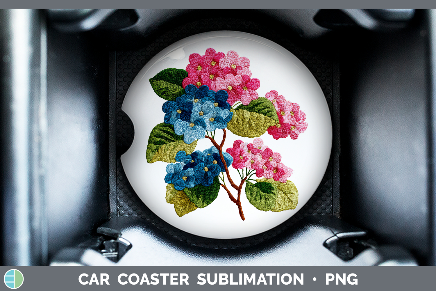 Hydrangea Flowers 01 Embroidery Car Coaster Sublimation Desi