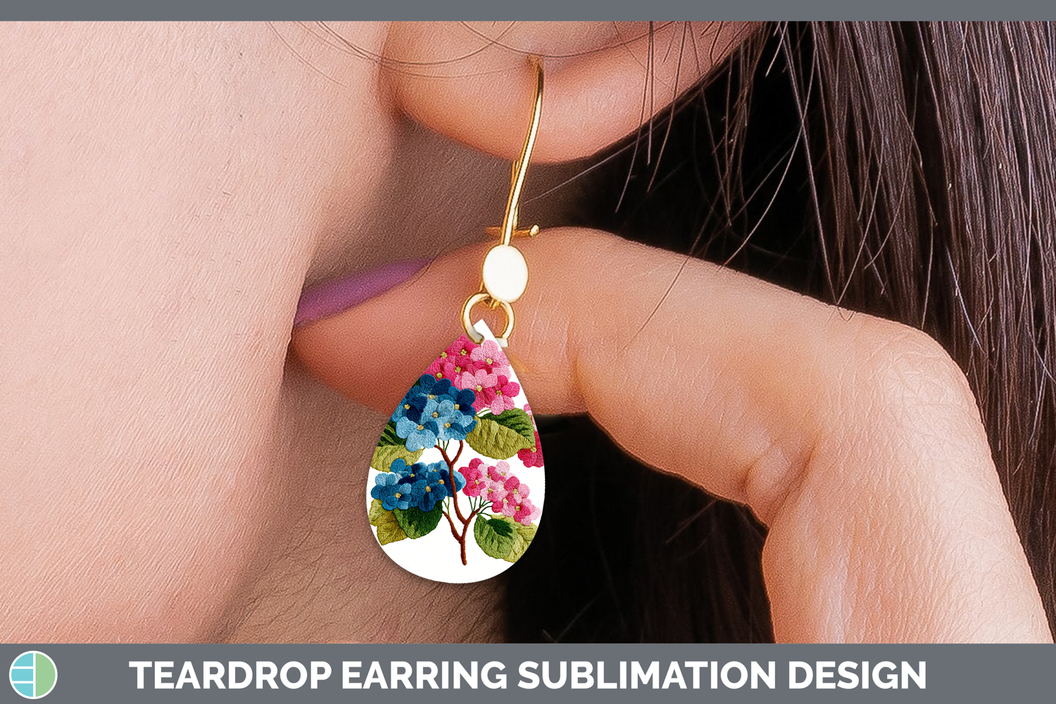 Hydrangea Flowers 01 Embroidery Teardrop Earrings Sublimatio