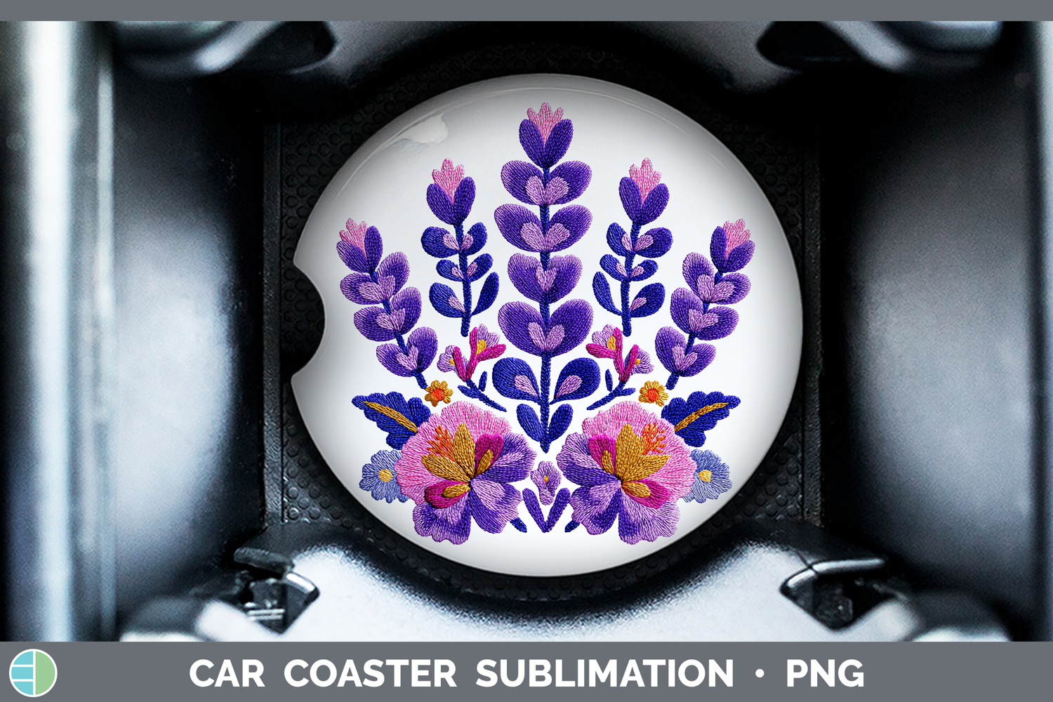 Lavender Flowers 01 Embroidery Car Coaster Sublimation Desig