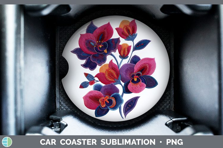 Orchid Flowers 01 Embroidery Car Coaster Sublimation Design