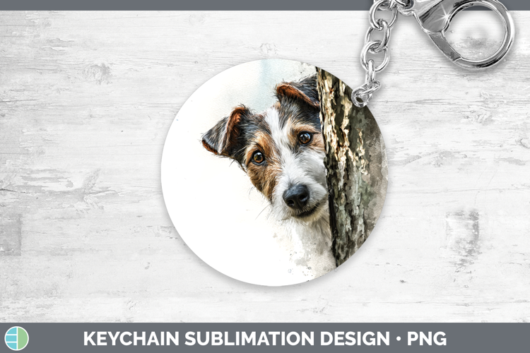 Fox Terrier Dogs 01 Tree Peek Keychain Sublimation Design